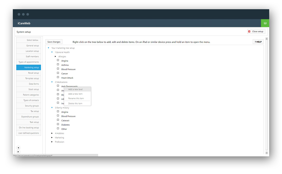 Using our intuitive marketing tree which comes pre-loaded with some standard marketing questions, you can modify the structure to define an unlimited array of heading and subsection and ultimately possible answers to any number of questions you may wish to ask.
